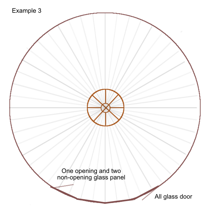 Once you have an idea of the size and design you'd like, simply draw a circle, mark the position of the door and window panels you prefer, and send it to me. I will then prepare an estimate for you.